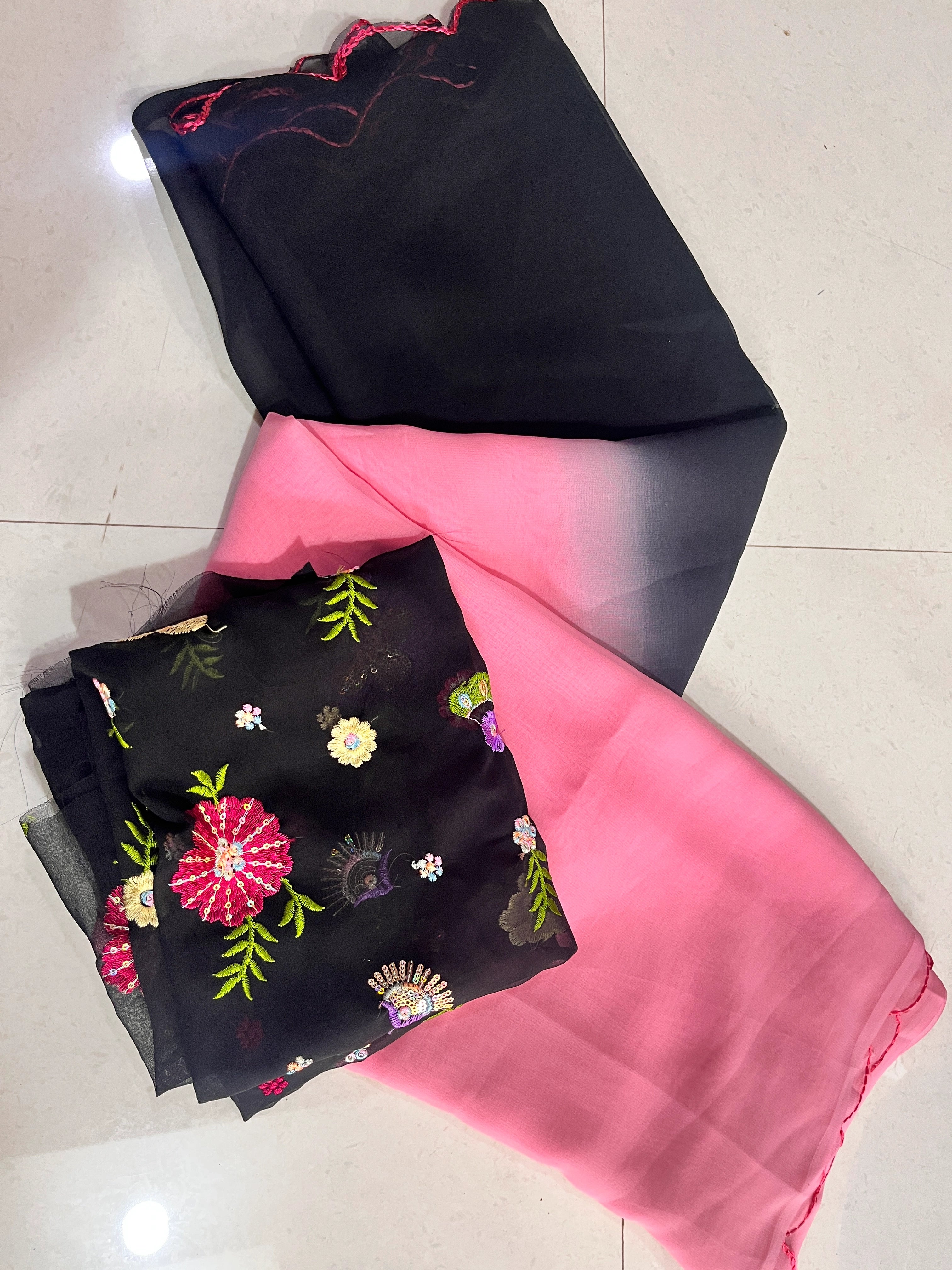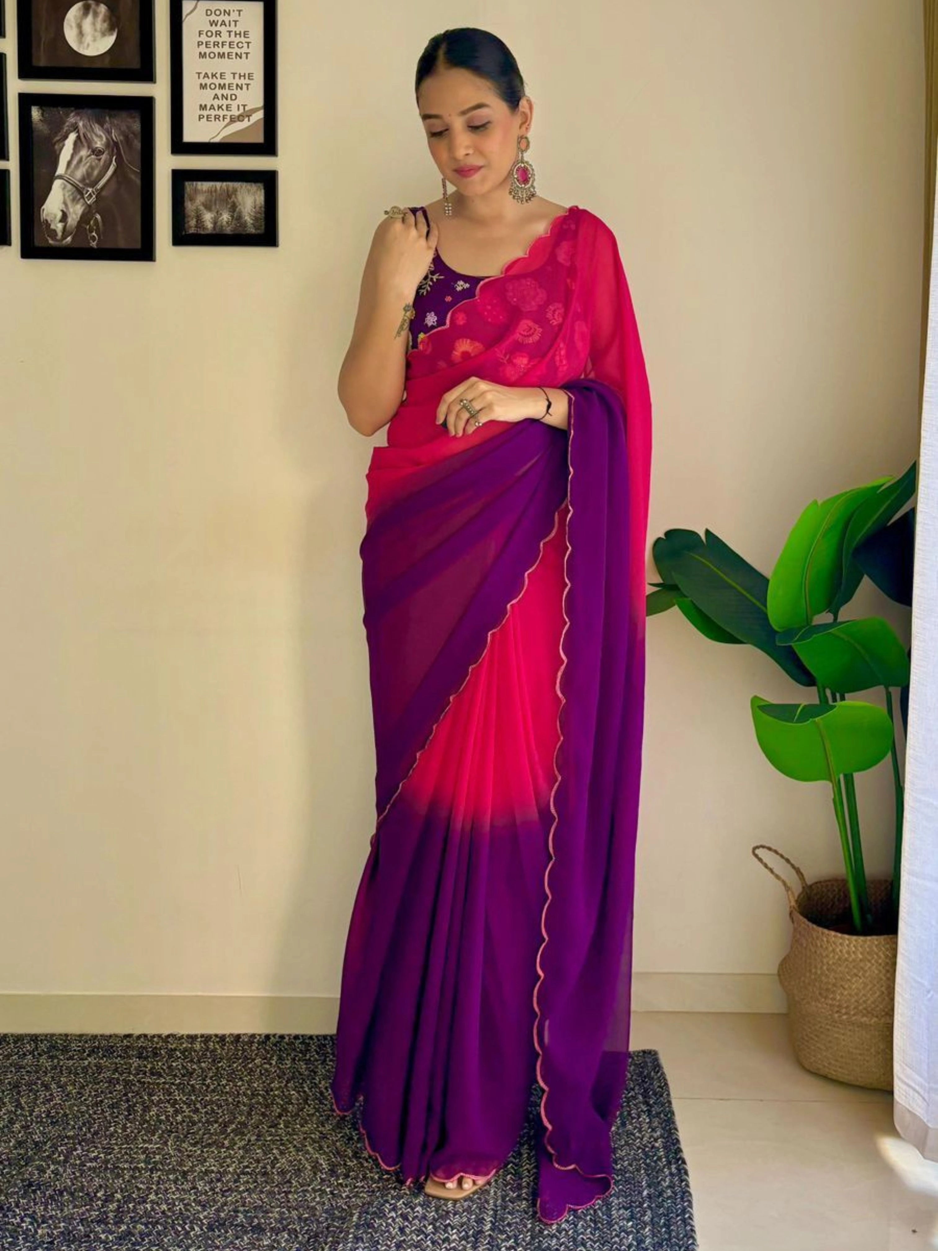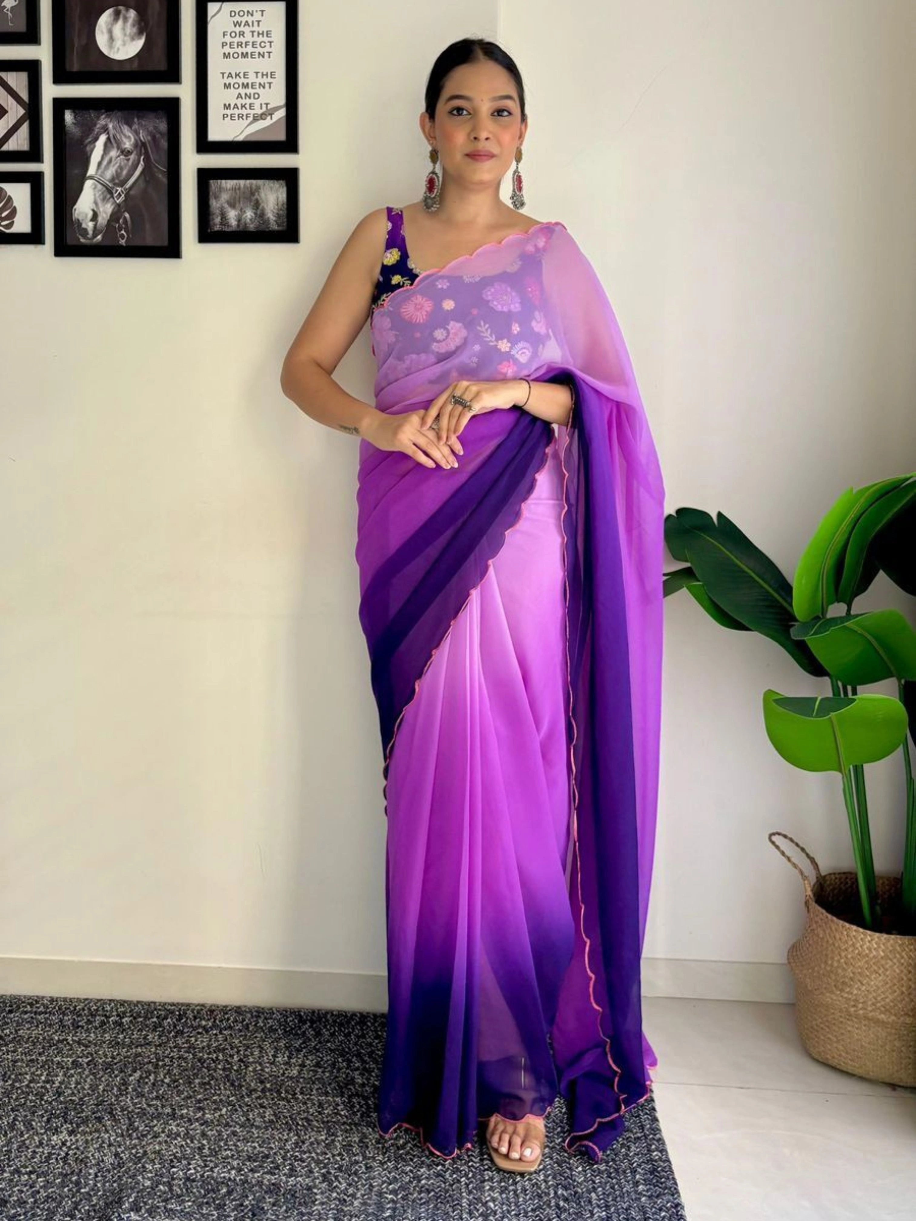 Minimalism meets elegance in this stunning Plain Shaded Saree, paired effortlessly with a beautifully crafted work blouse. The saree features a soft dual-tone gradient, flowing seamlessly in harmonious shades that offer a modern yet graceful appeal. Lightweight, elegant, and easy to drape.
