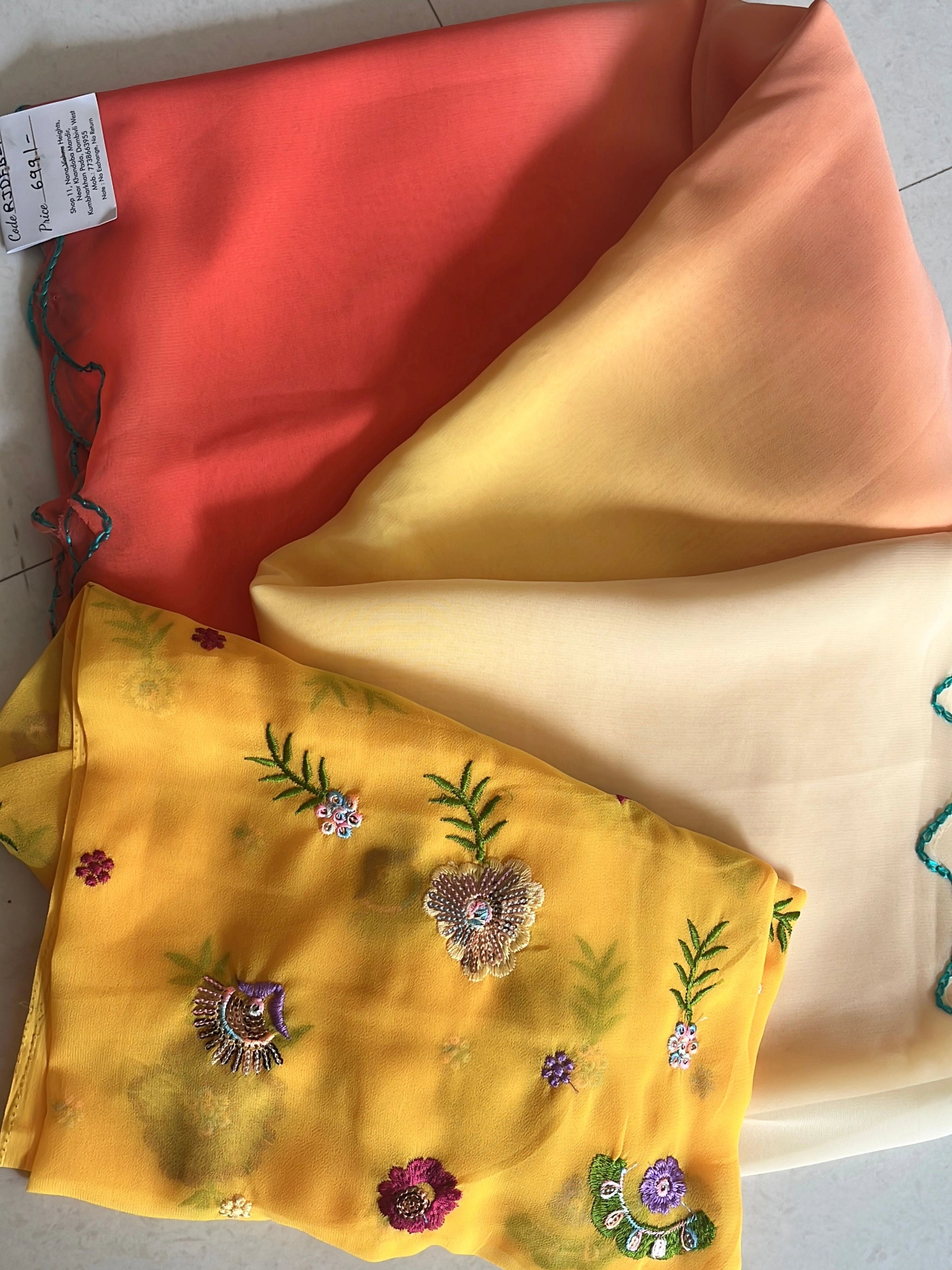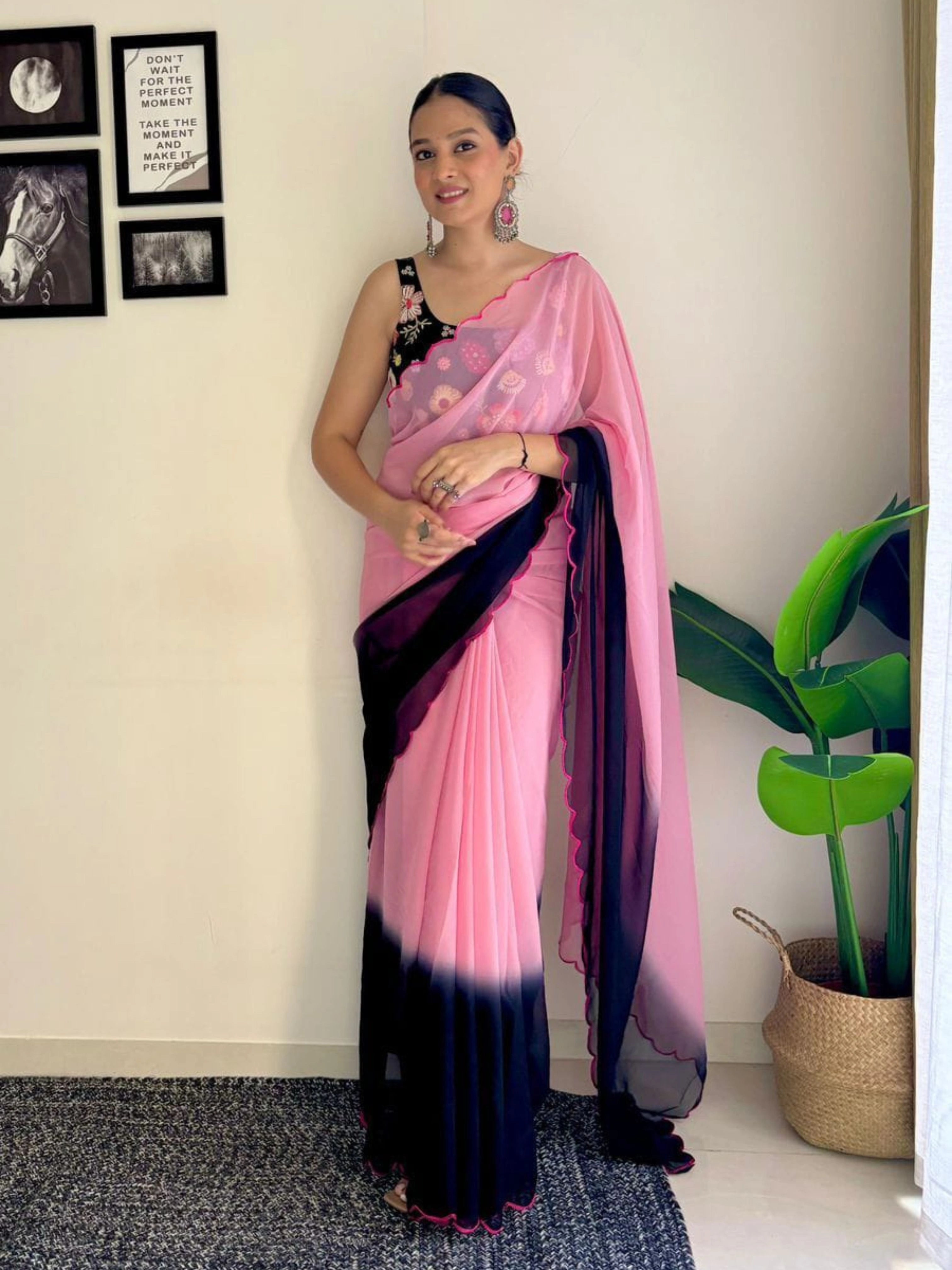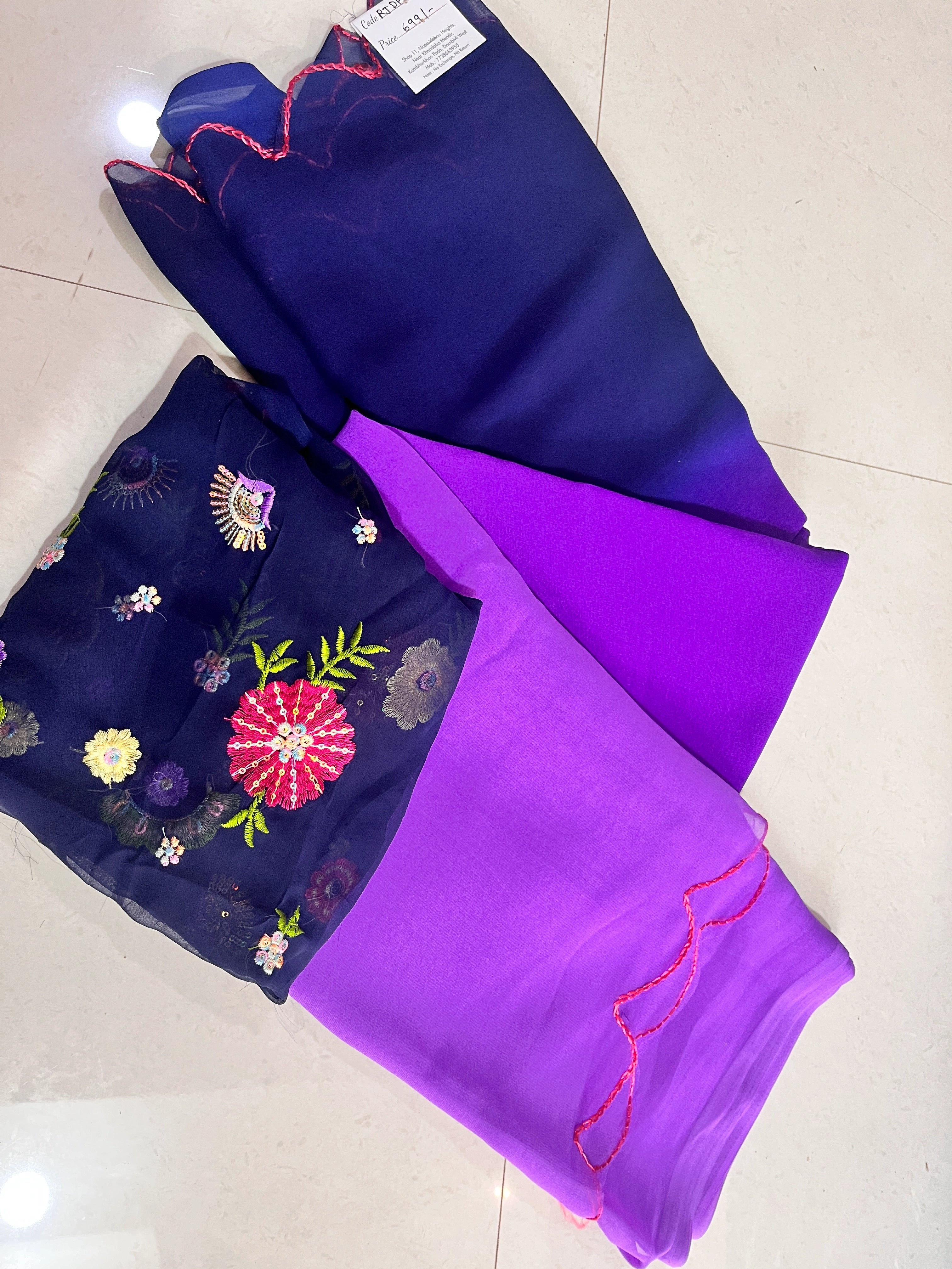 Minimalism meets elegance in this stunning Plain Shaded Saree, paired effortlessly with a beautifully crafted work blouse. The saree features a soft dual-tone gradient, flowing seamlessly in harmonious shades that offer a modern yet graceful appeal. Lightweight, elegant, and easy to drape.