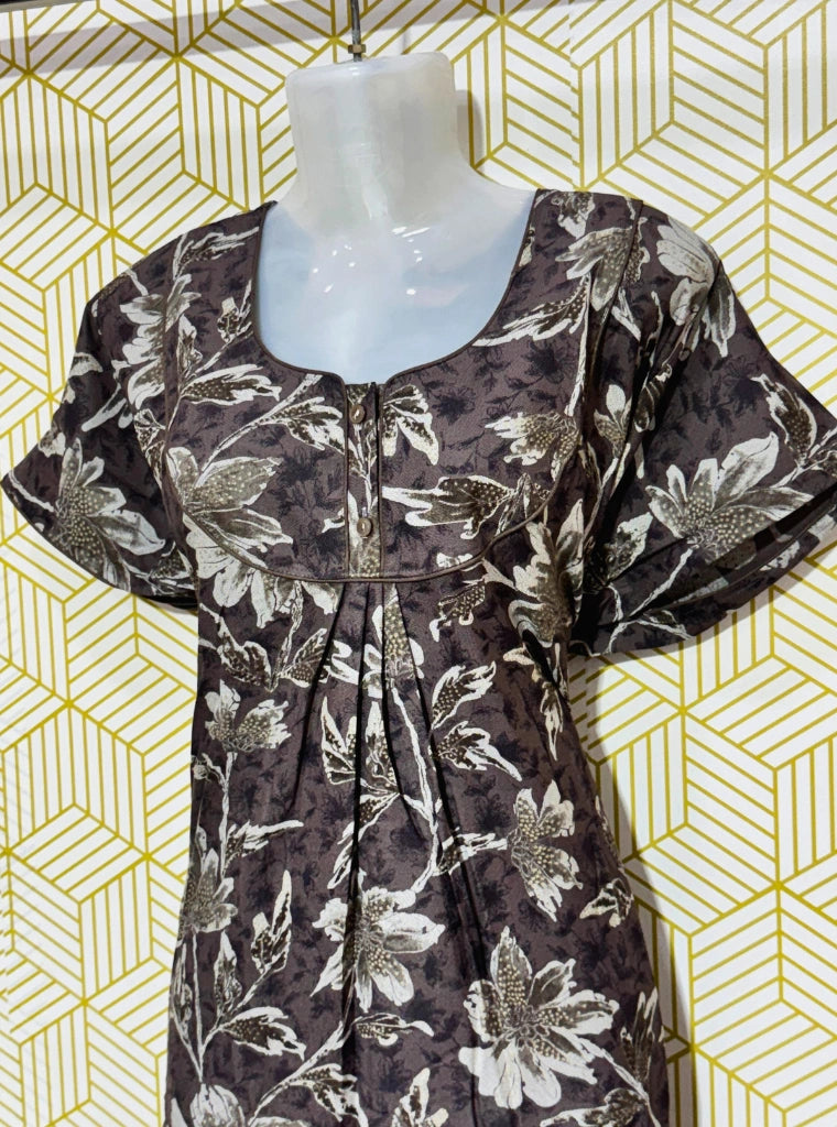 Two button alpine maxi with beautiful flower print. Comes with a side pocket.