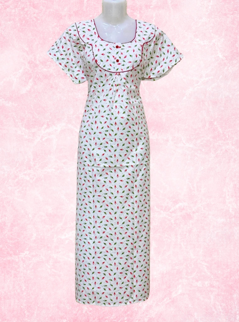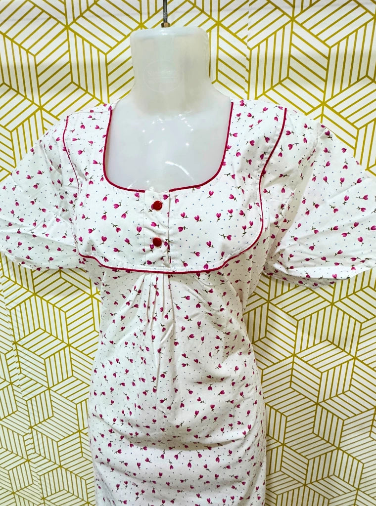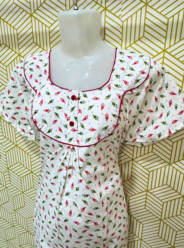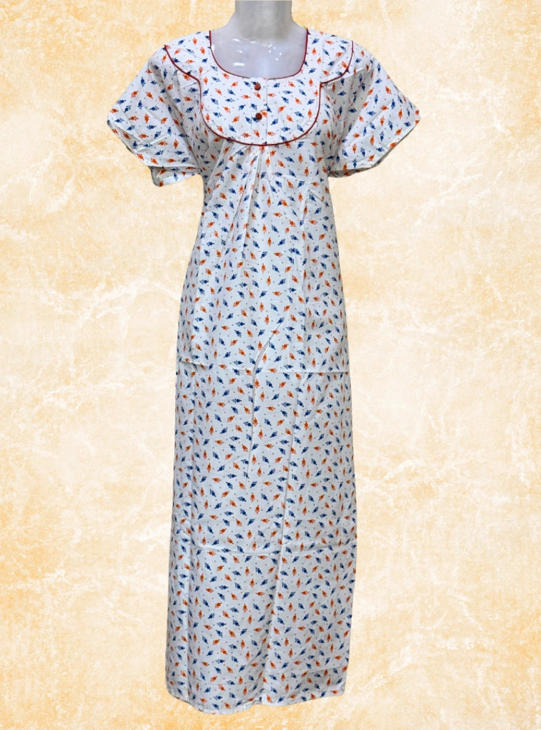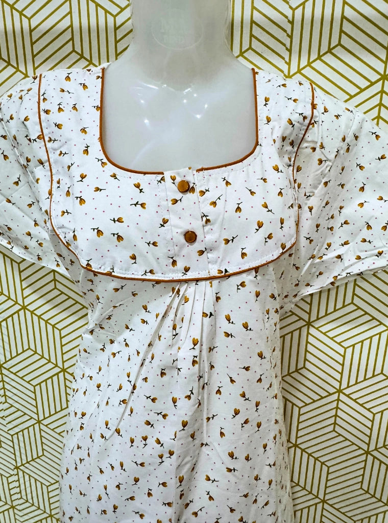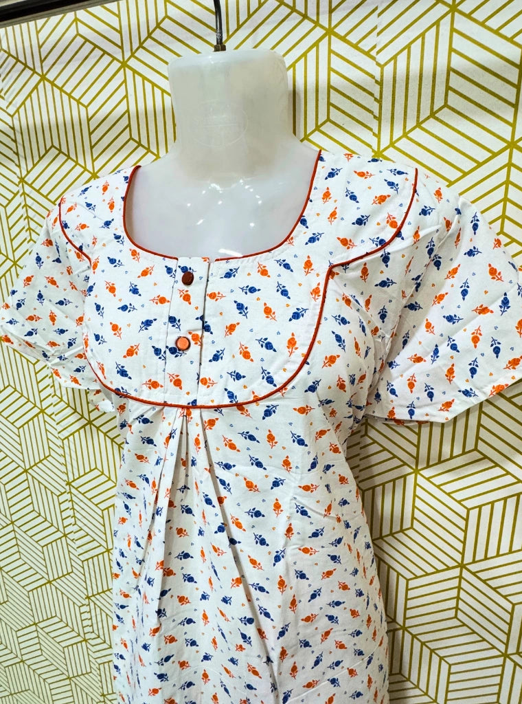 Poly Cotton maxi comes with two buttons, floral butti and a pocket.
